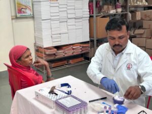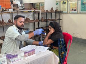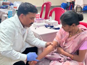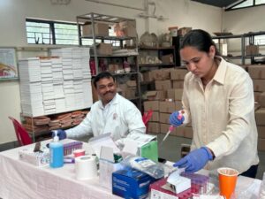 During the camp, blood grouping and screening for Brucellosis were also performed using lateral flow–based rapid tests. The team involved in conducting the camp included Dr. Rajpal Singh Kashyap, Dr. Amit Nayak, Dr. Rima Biswas, Mr. Chinmay Dhongadi, Ms. Kumari Sneha, Ms. Nidhi Makwana, Ms. Akshata Nandanwar, and Ms. Abhaya Kanoje.