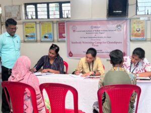 A screening and awareness camp was conducted on 7 March at Go Vigyan Anusandhan Kendra, Deolapar, as part of the project by CIIMS Research Laboratory titled “Generation and Evaluation of Human Monoclonal Antibodies against Chandipura Virus.” The initiative aims to identify antibodies in healthy individuals to support the development of monoclonal antibodies against Chandipura virus.